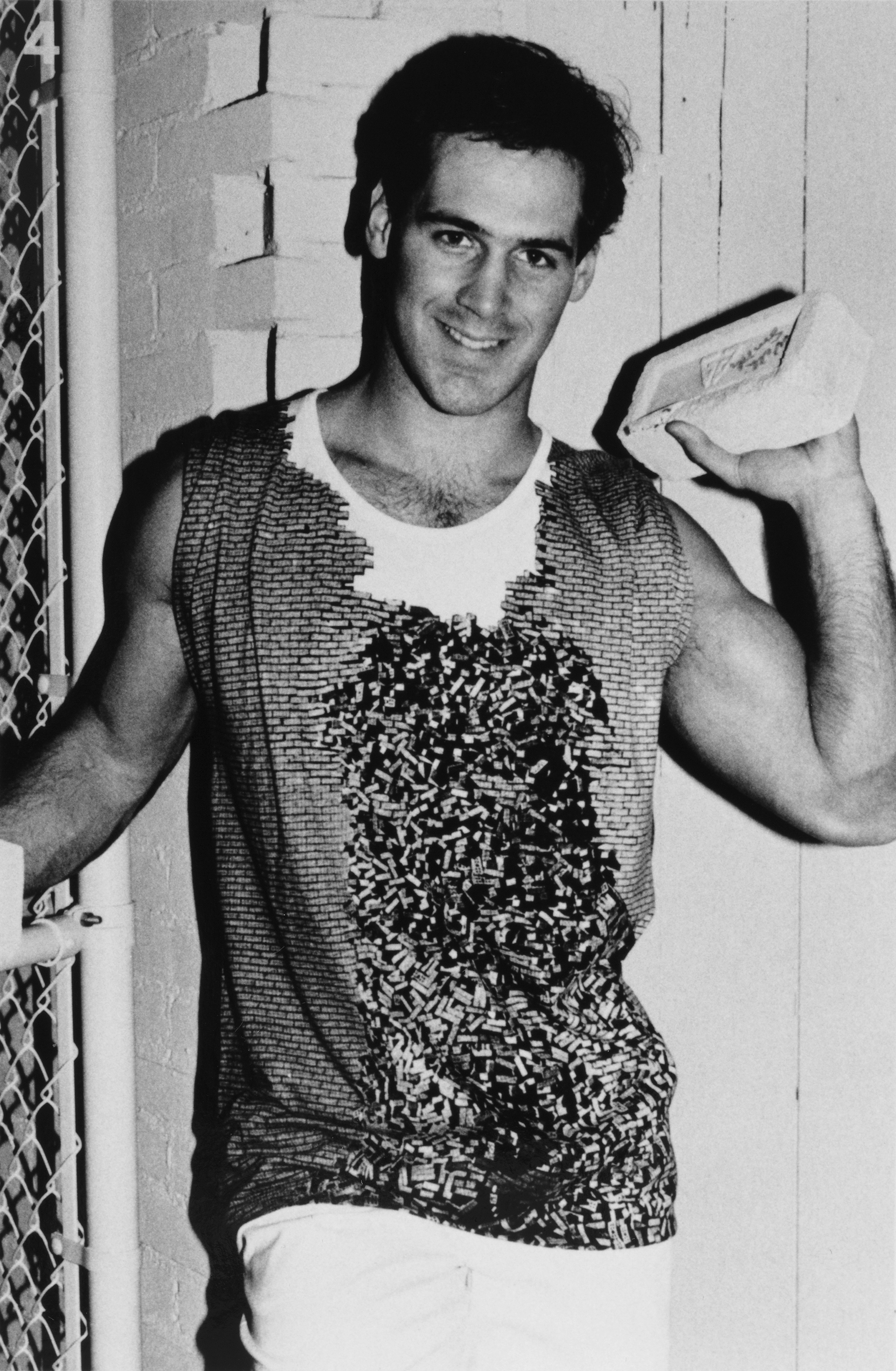 Willi Smith’s genuine desire to work across formats and disciplines extended to forming WilliWear Productions with Laurie Mallet, whose remit was to collaborate with contemporary artists they admired. The division’s lead-off collection of accessible, artist-designed T-shirts—debuted at the Ronald Feldman Gallery in 1984, where they were presented on cardboard wrapped in cellophane like poster prints in one extra-large size and sold for thirty-seven dollars a pop—created the template for similar efforts today by the likes of Supreme, Uniqlo, and Comme des Garçons. No one seems to have the final count of artists ultimately commissioned to create T-shirts between 1983 and 1987, and only a few examples survive. The launch press release included the following biographies and quotes from participating artists, celebrating and complicating the marriage of art and industry.